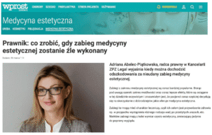 Adriana Abelec-Piątkowska, radca prawny w Kancelarii ZPZ Legal wyjaśnia kiedy można dochodzić odszkodowania za nieudany zabieg medycyny estetycznej.